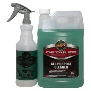 Maximum Dilution Ratio (MDR): 10:1. Meguiar’s Detailer All Purpose Cleaner is a versatile cleaner for both exterior and interior surfaces. Its superior foaming action gently lifts the dirt away from carpet, upholstery, vinyl and even leather. Ideal for reconditioning most interior surfaces. Active foaming action lifts dirt. Fabric softeners enhance luxurious results