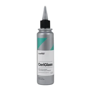 CeriGlass is a unique glass polishing system developed by the innovative technique of blending special ceramics (which include Cerium Oxide) together with other nano components and mild abrasives to create the most user-friendly and effective glass polishing system! CeriGlass deep cleans and polishes all glass surfaces with ease. It quickly removes acid rain spots, hard water spots, road film, and stubborn bird stains. It is also capable of removing fine to medium windshield wiper/grit scratches and swirls! And it does all this without warping the glass.